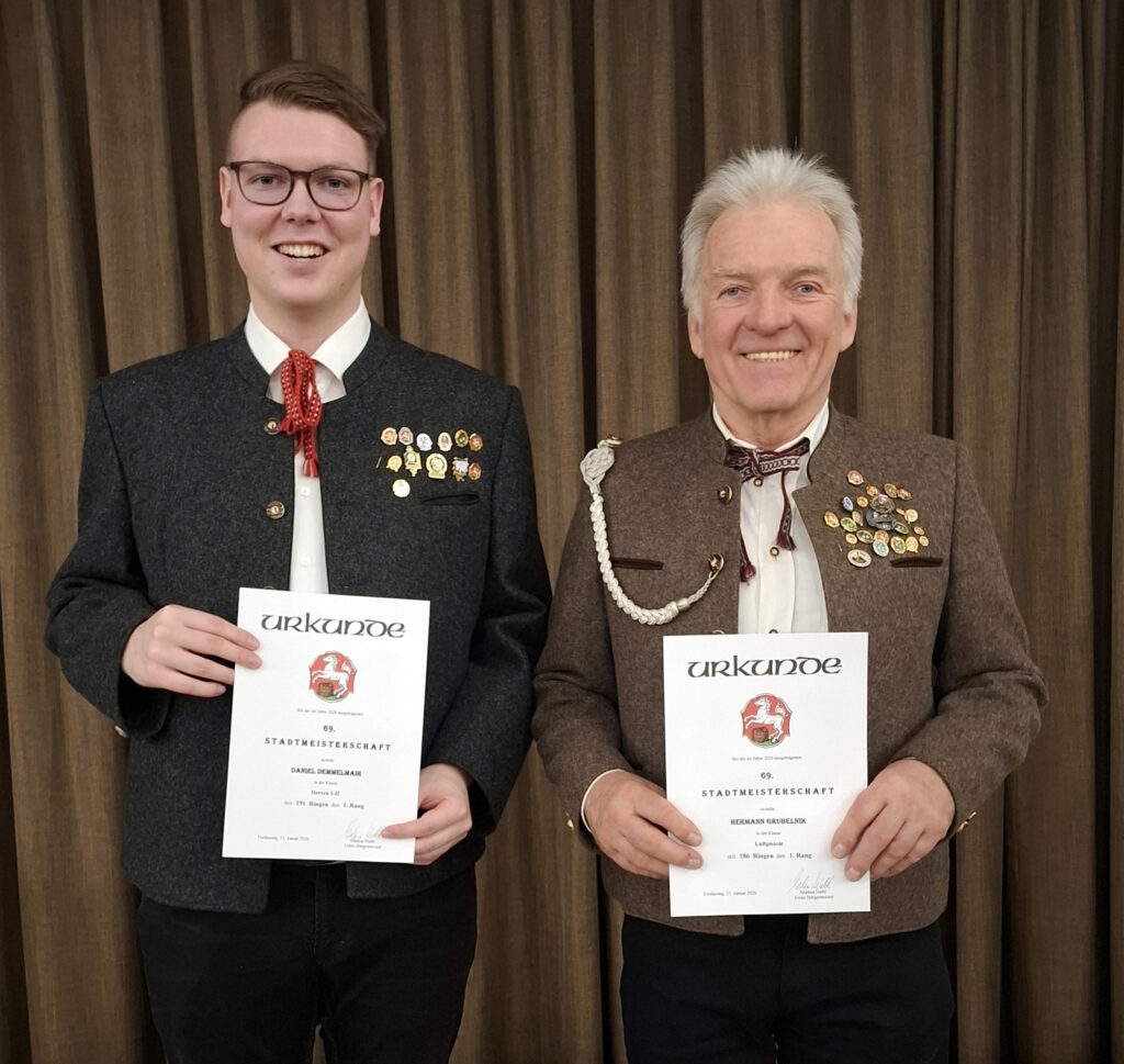 Freilassing. Die Schützen der SG Alpenrose Brodhausen dominierten die 69 Freilassinger Stadtmeisterschaft: In 16 Wertungsklassen holten sie nicht weniger als 13 Siege. Die Königswürde verteidigte Conny Demmelmair eindrucksvoll und Alexandra Heimerl krönte mit ihrer starken Leistung zur Stadtmeisterin.
