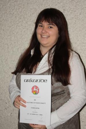 Das ausgeglichenste Ergebnis lieferte die Schützenklasse. Gleich drei Schützen hatten 190 Ringe aufzuweisen und trafen mit 93 und 97 Ringen auch zwei gleiche Serien. Die Regularien sprachen zugunsten von Frank Röttgen (T), der 12 Zehner gegenüber von 11 Zehnern durch Stefan Gruber jun. (B) geschossen hatte. Tobias Sperl (B) wurde Dritter, da er mit 93 Ringen die schlechtere Endserie hatte. Mittlerweile ist man schon gewohnt, daß der Stadtmeistertitel aus der Damenklasse kommt. Alleine in den letzten sieben Jahren sicherten Yvonne Reiter (4mal), Daniela Elmer (2mal) und Silvia Hinterstoißer die Meisterschaft für das angeblich „schwache“ Geschlecht. Mit herausragenden 195 Ringen gewann die junge Schützin den Meistertitel. Sie hält auch mit 196 Ringen den Meisterschaftsrekord. Daniela Elmer (188) konnte die Goldnadel heuer nicht verteidigen.