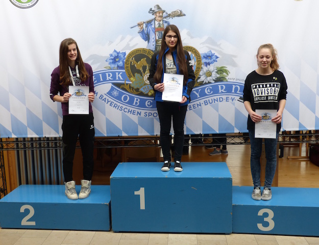 Alexandra Heimerl freut sich als doppelte Oberbayerische Meisterin über ihre ersten überregionalen Titel bei der Siegerehrung.